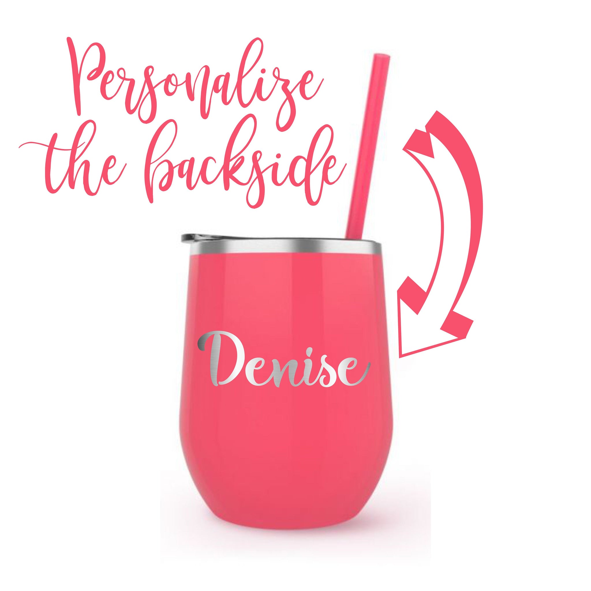 ** COLOR OF NAME/DESIGN ** The engraved design will always be silver (stainless steel). Your cup is laser engraved, removing the powder coating and revealing the stainless steel layer of the cup.