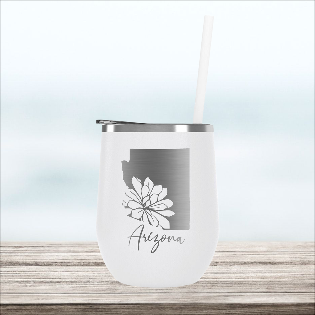 State with Flower | Engraved Wine Tumbler | Insulated Double-Walled Stainless Steel with Lid & Straw